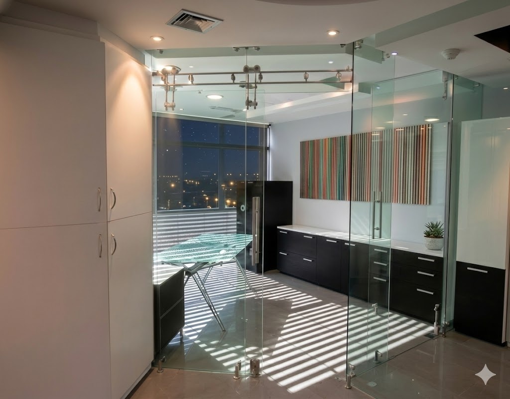 Esta oficina de 120mts2 para una distribuidora presenta un diseño contemporáneo y dinámico. Destaca el uso de mamparas de cristal templado que maximizan la amplitud visual y la entrada de luz natural.